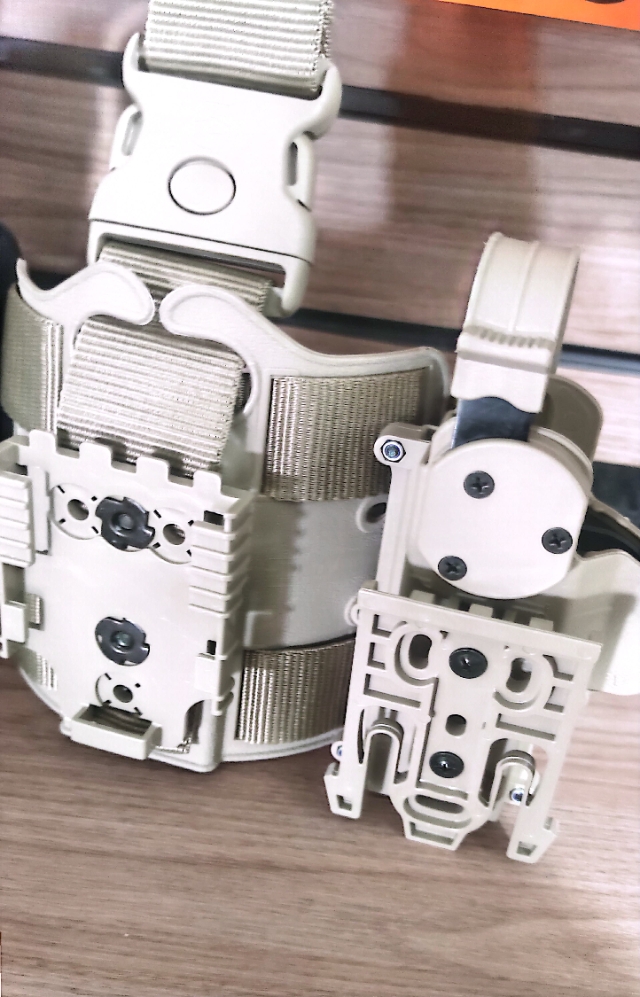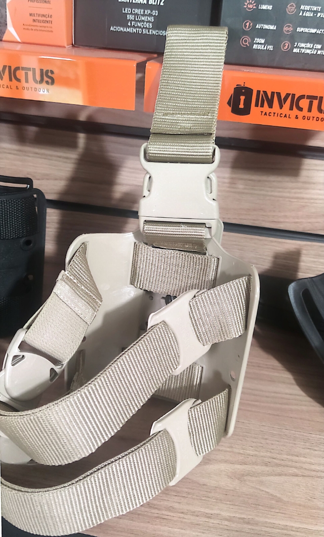 Coldre Tático de perna com adaptadores para a maioria das pistolas em operação pelas forças; Dois Níveis de retenção; Principais pistolas e revólveres em uso pelas forças; Glock , Imbel ponto 40 , Taurus PT- 100 ,PT-940, Taurus 24/7; Produzido em polímero nobre ejetado; Sistema de retenção com capuz giratório; Permite movimentos de saque mais rápidos e simples; Base de perna com alta flexibilidade e resistência, dupla passagem de elástico e buracos de ascensão para acessórios opcionais. Projetada para oferecer conforto seguindo a anatomia da perna; Passante e elásticos de alta qualidade; Limitador do passante em polímero.